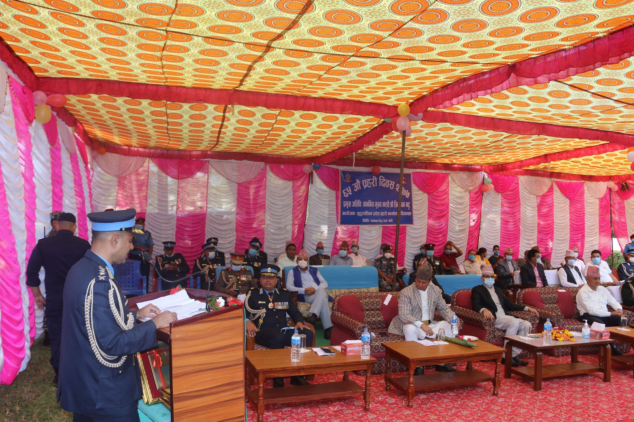 समय र प्रविधिको विकास संगै अपराध र अपराधिक कार्यविधिमा समेत परिवर्तन भईरहेकाले अपराध रोकथाम गरी समाजमा शान्ति सुव्यवस्था कायम गर्न नेपाल प्रहरीलाई आधुनिक प्रविधिमैत्री क्षमतायुक्त साथै दक्ष जनशक्ति उत्पादन गरी अनुसन्धान मैत्री वातावरण निर्माणमा जोड दिनुपर्ने कुरा बताउँदै सुदूरपश्चिम प्रदेश प्रहरीको समुन्नत विकासका लागि प्रदेश सरकार तत्पर रहेको कुरा बताउँनुभयो । कार्यक्रममा धन्यवाद मन्तव्य राख्नुहुँदै सुदुरपक्षिम प्रदेश प्रहरी प्रमुख प्रहरी नायव महानिरीक्षक उतम सुवेदी ज्युले अनेकौं आरोह-अवरोहका बीच नेपाल प्रहरीको शीर सदैव उच्च र अटल बनाई राख्न आफ्नो कर्तव्य पथमा सदा कर्मशिल रहि संगठनका खातिर देश र जनताको पक्षमा आफ्नो अमुल्य जीवन उत्सर्ग गर्ने अमर तथा शहिद प्रहरीहरु प्रति हार्दिक श्रद्धासुमन व्यक्त गर्नुभयो ।