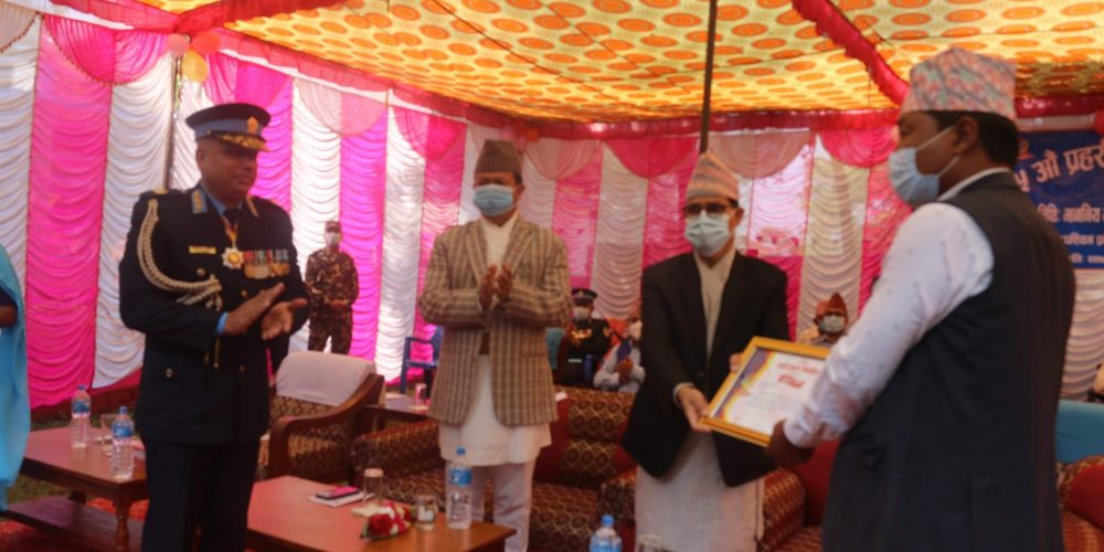 साथै नेपाल प्रहरीको पूर्वाधार विकास, भौतिक संरचना निर्माण र प्रविधियुक्त अनुसन्धान पद्धतिको विकास अहिलेको अहम आवश्यकता र अपरिहार्यता बनेको बताउँदै नेपाल प्रहरी संगठनमा प्रादेशिक संरचना स्थापित भईसकेको अवस्थाले यस्ता पूर्वाधार विकासमा प्रदेश सरकारको निरन्तर साथ र सहयोग प्राप्त भईरहने विश्वास व्यक्त गर्नुभयो । कार्यक्रमका प्रमुख अतिथि एवं विशेष अतिथिले अमर प्रहरीका आश्रीत परिवारलाई कदरपत्र तथा नगद रकम साथै प्रदेश प्रहरीको वार्षिक कार्ययोजना अनुसार त्रैमासिक कार्य सम्पादनको आधारमा उत्कृष्ट जिल्लाको रुपमा छनौट भएको प्रहरी कर्मचारीहरु लाई नगद पुरस्कार एवं सम्मान पत्र समेत प्रदान गरिएको थियो ।