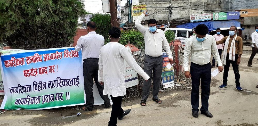 जेठ १२, रौतहट । नागरिकता विहीनहरुले जनताले नागरिकता पाउने भएपछि स्थानीयले नागरिकता अध्यादेशको समर्थनमा रौतहट, बारासहित मधेशका विभिन्न जिल्लामा प्रदर्शन गरेका छन् । सरकारले नागरिकता समस्या समाधान गर्ने उद्देश्यले सरकारको सिफारिसमा राष्ट्रपति विद्यादेवी भण्डारीद्वारा जारी नेपाल नागरिकता अध्यादेशबारे नेकपा एमालेबाट निष्कासित नेता भीम रावल, जनमोर्चा अध्यक्ष चित्रबहादुर केसी, नेपाल कम्युनिष्ट पार्टीका महासचिव नेत्रविक्रम चन्द, नेमकिपा अध्यक्ष नारायणमान बिजुक्छेले विवादित एवम् भ्रामक वक्तव्यबाजी गरेपछि स्थानीय आक्रोशित बनेका हुन् ।