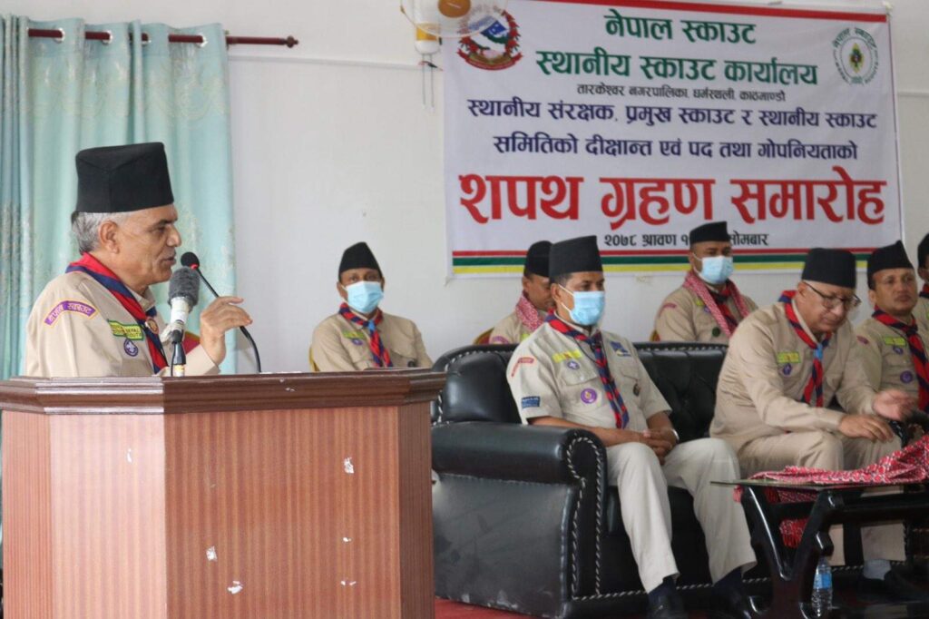 नेपाल स्काउट स्थानिय स्काउट तारकेश्वर नगरपालिकाले सोमबार तारकेश्वर नगरपालिका वडा नं ६मा एक कार्यक्रमको आयोजना गरी नगर प्रमुख रामेश्वर बोहरा, उप्रमुख भवानी डोटेल भानु तथा नगर शिक्षा शाखा प्रमुख होम नाथ न्यौपानेलाई दिक्षित गरेको हो ।दिक्षित पदाधिकारीहरुलाई नेपाल स्काउटका राष्ट्रिय संयोजक लोक बहादुर भण्डारीले पद तथा गोपनीयताको सपथ ग्रहण गराएका थिए ।