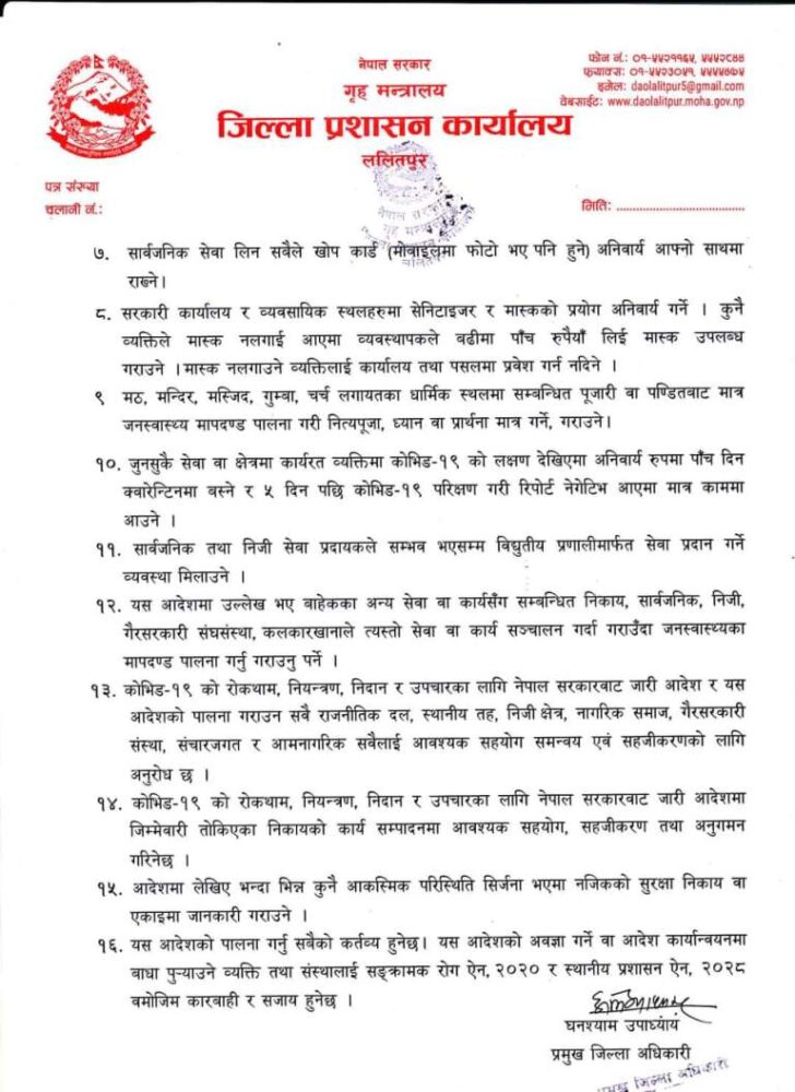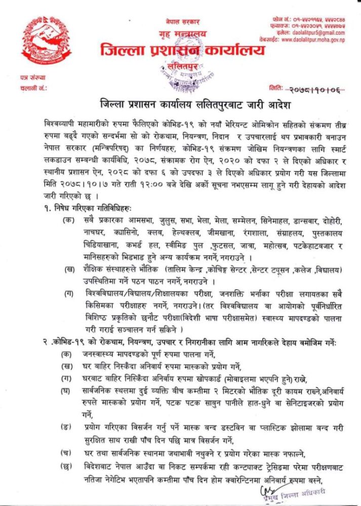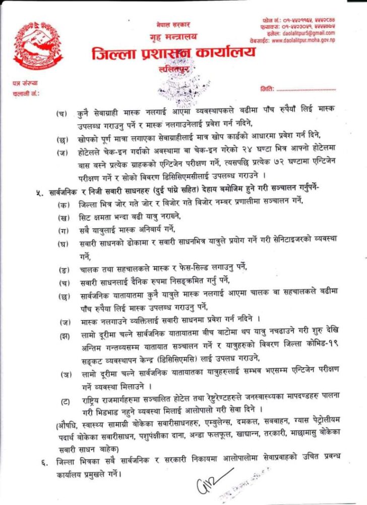 काठमाडौं, ललितपुर र भक्तपुरका प्रमुख जिल्ला अधिकारीहरूको बैठकले शुक्रबार राति १२ बजेदेखि निजी तथा सार्वजनिक सवारी साधनहरूमा जोर बिजोर प्रणाली लागु गर्ने निर्णय गरेको काठमाडौंकी सहायक प्रमुख जिल्ला अधिकारी सुप्रभा खनाल ढुङ्गेलले जानकारी दिइन् ।