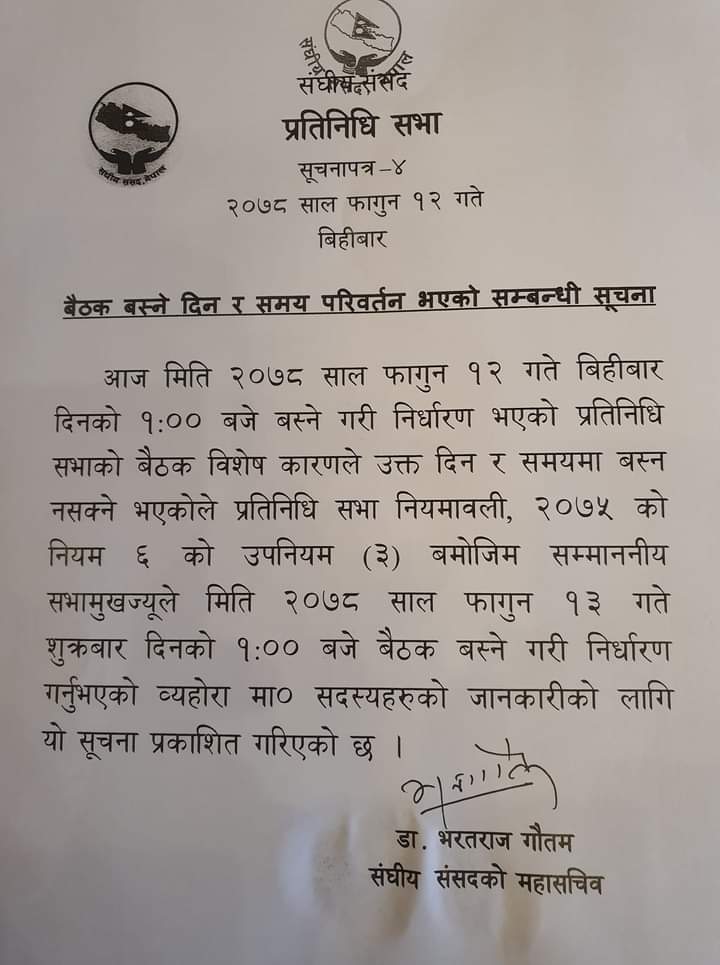 संसद बैठक स्थगित खबर२४ नेपाल पढ्न लाग्ने समय : १ मिनेट फागुन १२, काठमाडौं । आज बस्ने भनिएको संसद बैठक स्थगित भएको छ । सरकारको आग्रहमा बैठक स्थगित भएको हो । Post Views: 33 Sharing Facebook Twitter Pinterest LinkedIn