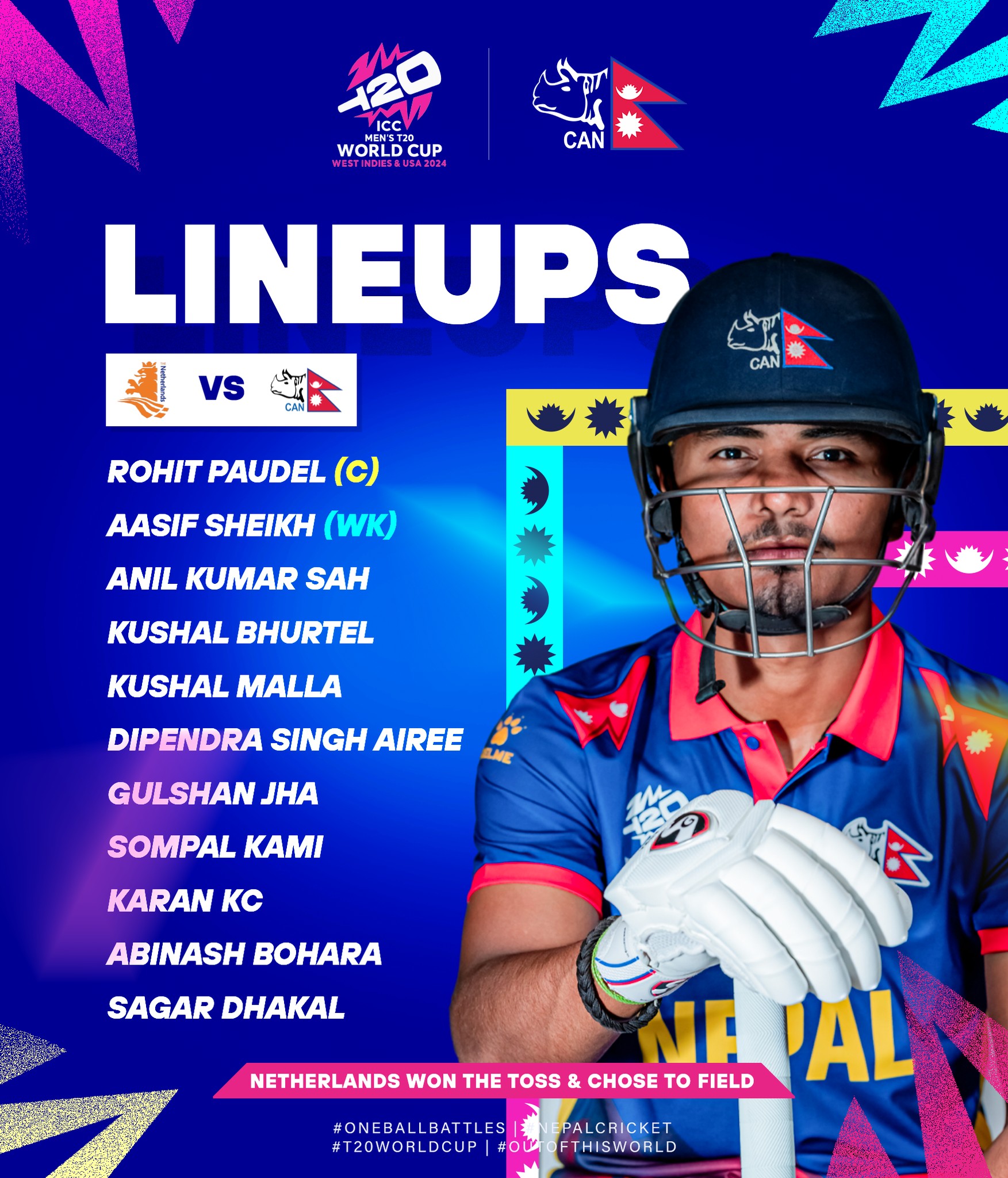 जेठ २२, काठमाडौं। आइसिसी ट्वान्टी–२० विश्वकपअन्तर्गत समूह चरणको पहिलो खेलमा नेपालले ब्याटिङ गर्ने भएको छ।