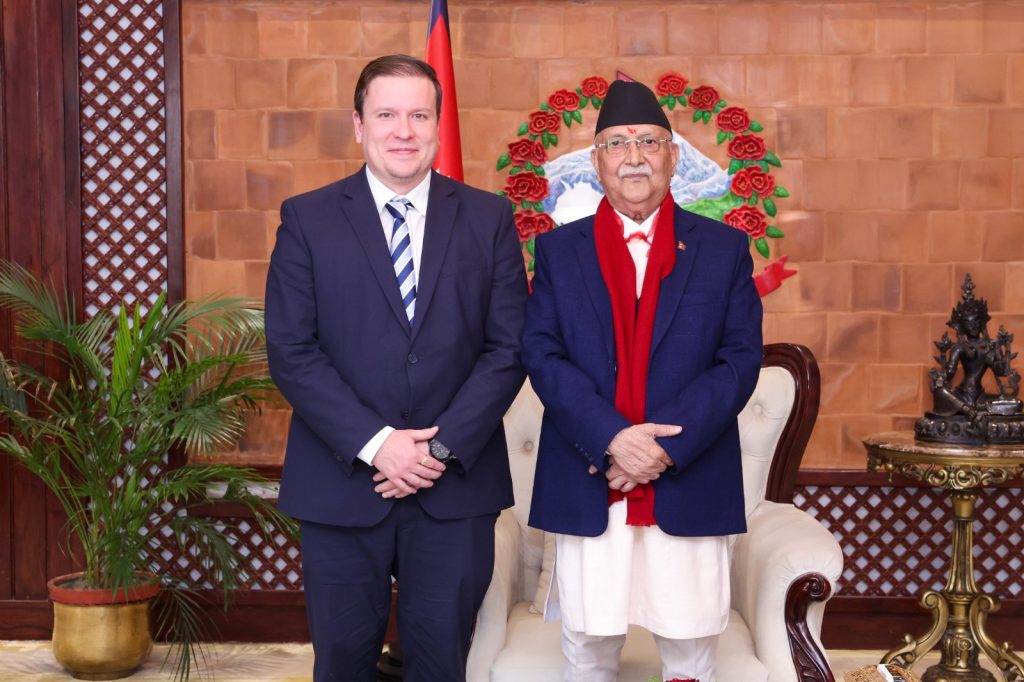 मंसिर १२, काठमाडौँ । प्रधानमन्त्री केपी शर्मा ओलीसँग फिनल्याण्डका विदेश मन्त्रालयका वैदेशिक व्यापार तथा विकासमन्त्री भिल्ले ताभियोले आज शिष्टाचार भेट गर्नुभएको छ । प्रधानमन्त्री निवास, बालुवाटारमा भएको भेटमा दुईपीक्षय हित र आपसी सम्बन्धका विविध पक्षमा कुराकानी भएको थियो ।