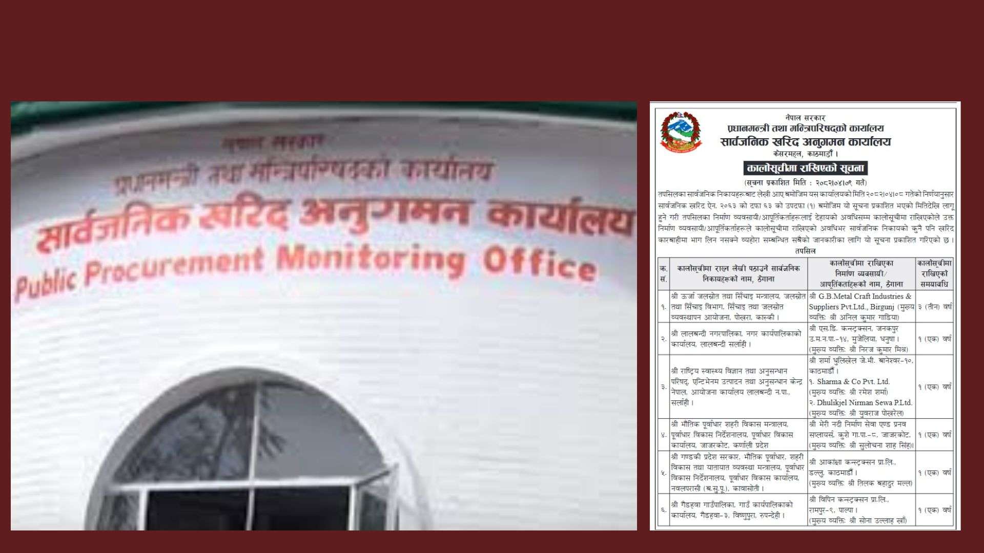 जिम्मा लिएको काम समयमै पूरा नगर्ने ति निर्माण कम्पनीलाई सार्वजनिक खरिद ऐन, २०६३ को दफा ६३ को उपदफा (१) बमोजिम एकदेखि तीन वर्षको लागि कालो सूचीमा राखिएको सूचनामा उल्लेख छ ।
