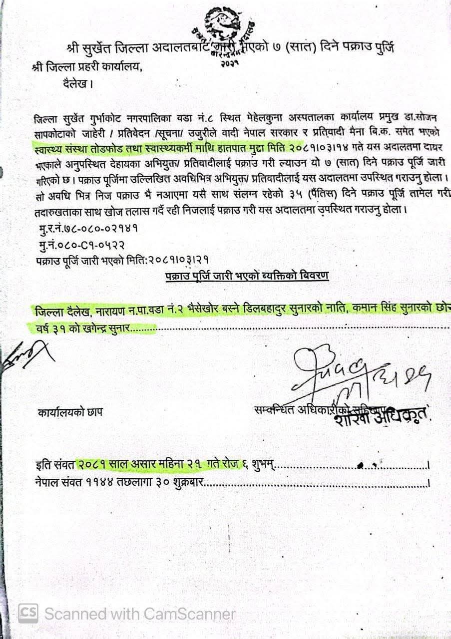सर्वोच्चले प्रतिवादी सुनारलाई झिकाउने आदेश दिएको थियो । सोपश्चात सुनारले सर्वोच्चकी न्यायधीस सपना मल्ल प्रधानलाई पनि उनले गालीगलोज गरेर लेखे । सोपश्चात अदालतले टिप्पणी उठाएर मुद्दा दर्ता गरेको थियो ।