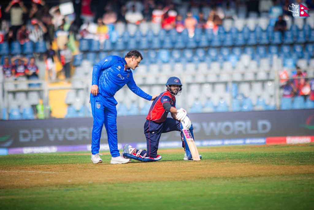 माघ २९, काठमाडौं । भारत र श्रीलंकामा जारी आइसिसी टी–२० विश्वकप अन्तर्गत इटालीविरुद्ध टस हारेर ब्याटिङ गरेको नेपालले दोस्रो विकेट गुमएको छ । उसले कप्तान रोहितकुमार पौडेललाई २३ रनमा आउट गरेको हो ।